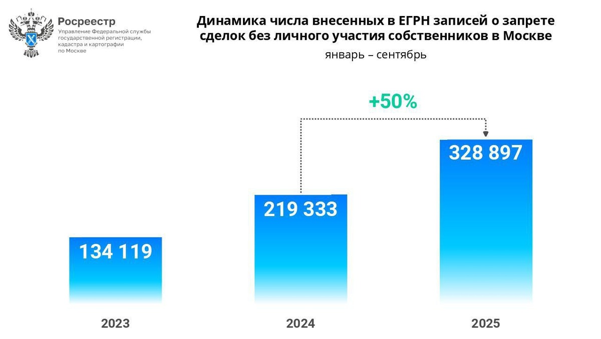 По средам немного статистики. Росреестр сегодня опубликовал любопытную, по крайне мере для меня, статистику - за прошедший год количество людей запретивших регистрацию перехода права на недвижимость без личного участия выросло на 50%. Для меня удивительно такое большое число желающих запретить регистрацию без личного участия в принципе. Продать чужую квартиру просто только в кино, или “на бумаге”. В жизни сильно сложнее. Мне казалось, что интерес к этому запрету проявят в основном пожилые люди, которые реализуют его в первый же год, когда такая услуга появилась и их количество, по естественным причинам, будет уменьшаться, но нет - оно увеличивается. Между тем, основной способ мошенничества с жильем в последние годы это его продажа жертвами обмана телефонных мошенников. Но такие сделки совершаются людьми лично и добровольно и этот запрет им никак не поможет их не совершать. Возможно я чего-то упускаю и есть причина, по которой людям кажется, что таким запретом они себя обезопасили от в