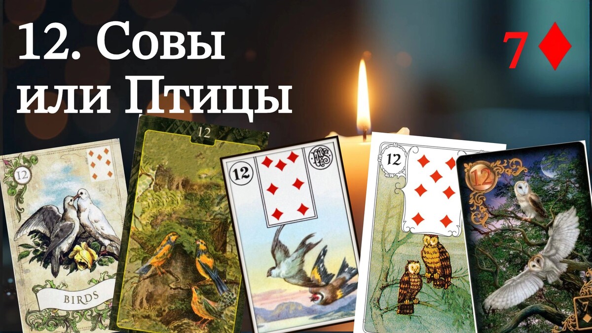 Дорогие, здравствуйте! Возникло небольшое молчание. Причина проста: следующая карта — Совы и Птицы — одна из самых сложных для понимания в колоде Ленорман, и я хотела найти самые точные слова, чтобы объяснить ее вам. Почему она сложная? Потому что в зависимости от колоды и от контекста вопроса, эта карта может означать две абсолютно противоположные вещи. Это не просто двойственность, это два разных состояния, два разных вида общения. И главное, что я хочу до вас донесть — в современном прочтении это две РАЗНЫЕ карты. Давайте разберемся кардинально, ведь от того, какой образ перед вами, будет на 90% зависеть трактовка. В моей колоде, например, живут именно Совы — вдумчивые птицы с пронзительным взглядом, которые, кажется, видят тебя насквозь. Я их и опасаюсь, и безмерно уважаю. Их появление — всегда знак: пора прекратить суету и слушать очень внимательно — либо свое внутреннее «я», либо того, кто разбирается в ситуации лучше меня. Поэтому, когда вы выбираете колоду для вопроса, принцип