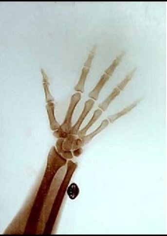 23 марта 1898 года Николай II и его жена Александра Фёдоровна сделали рентгеновские снимки кистей. Об этом событии Николай II записал в дневнике: «Доктор Хорн, который массирует Аликс каждое утро, показывал нам со своею женою интересные опыты действия рентгеновских лучей. Увековечили наши руки сквозною фотографиею на пластинке!». Доктор К. Х. Хорн — петербургский врач-ортопед, с 1894 года возглавлявший ортопедическое отделение при Максимилиановской лечебнице, работал также в своей частной ортопедической клинике. Плёнки с рентгеновскими снимками рук Николая II и Александры Фёдоровны хранятся в коллекции библиотеки истории медицины Гарвардского университета По воспоминаниям фрейлины Александры Фёдоровны из-за этого прибора обесточело весь дворец!