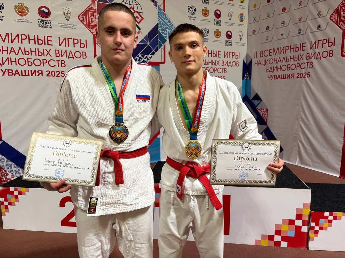 Первокурсники СПО ЮУрГАУ Егор Деменко и Александр Петров приняли участие во II Всемирных Играх национальных видов спорта. Частью Игр стали Чемпионат и Первенство мира по всестилевому каратэ. Соревнования проходили в Новочебоксарске (Чувашия). В них приняли участие более 3700 спортсменов из 29 стран мира, что сделало их одним из самых масштабных событий в мире боевых искусств. Блестящие результаты показала команда ДЮСШ города Троицка, выступавшая под эгидой Челябинской областной Федерации всестилевого каратэ. Особого внимания заслуживают достижения двух первокурсников СПО ЮУрГАУ — Егора Деменко и Александра Петрова. В ходе напряжённой борьбы Егор Деменко сумел завоевать титул чемпиона мира, продемонстрировав высочайший уровень технического мастерства и волю к победе. Егор и Александр обучаются по специальности «Электротехнические системы в АПК», сообщили в ЮУрГАУ. Поздравляем ребят и их тренеров и желаем дальнейших успехов и побед!