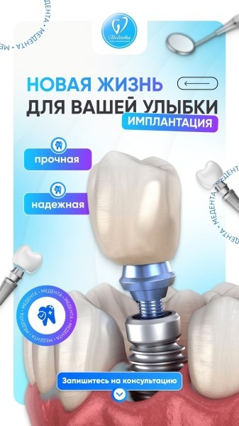 СТОМАТОЛОГИЯ Медента 8-800-555-73-67 г. Белорецк, ул. Ленина, 57, г.Учалы, ул. Горького, 4. Бесплатно=Консультация+Осмотр+План лечения+КТ Акция* Чистка зубов за 1990 Лечение кариеса от 2500 Лечение молочного зуба 2500-3500 Замена пломбы от 2500 Реставрация переднего зуба от 3000 Удаление зуба от 1500 Удаление зуба мудрости (8 зуба) от 3000 Металлокерамическая коронка 10000 Коронка циркон,eMax 15000 Зубные протезы (Бюгельный, Акриловый, АкриФри) от 15000 Импланта(Osstem)+установка 17500 Брекеты+установка 35000 Сеть СТОМАТОЛОГИЙ Медента 8-800-555-73-67 Белорецк, ул. Ленина, 57, г.Учалы,ул. Горького, 4. Возврат 13% налога Рассрочка (Внутренняя) Без участия банка Гарантия на услуги от 1 года Работаем без перерывов и без выходных 7 дней в неделю с 9.00 до 21:00 стоматологиябелорецк.рф vk.com/stomatologiya_belore… Есть противопоказания. Необходима консультация специалиста. Запись для лиц старше 18 лет. Источник https://uchaly102.ru/?p=109531