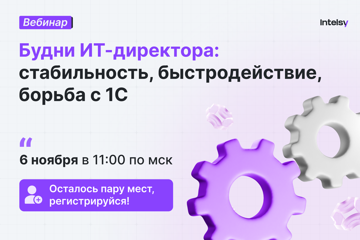 Тема: Будни ИТ-директора: стабильность, быстродействие, борьба с 1С Дата: 6 ноября в 11:00 по мск О чем поговорим: – почему 1С становится головной болью ИТ-директора; – какие задачи и риски тянет на себе руководитель, когда в проекте десятки баз и пользователей; – зачем нужны внешние спецы, даже если есть свой штат; – как выбрать партнёра и не попасть на “дорого и бесполезно”; – как выстроить стабильную работу 1С без срывов и нервов. 📍 Регистрация — по ссылке, без спама и рассылок. Вебинар
