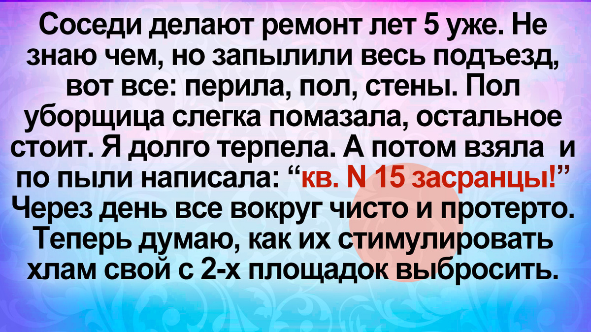Прошло пару часов, стук в дверь : соседка с перфораторами "вот мой муж нашёл"
