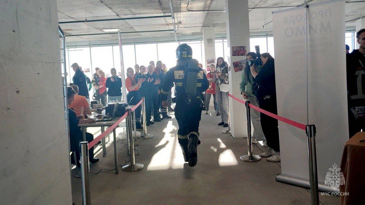 Участники соревнований покоряли 38 этажей, 919 ступеней, 141 метр вертикального подъема в полной боевой экипировке и с включением в дыхательный аппарат.