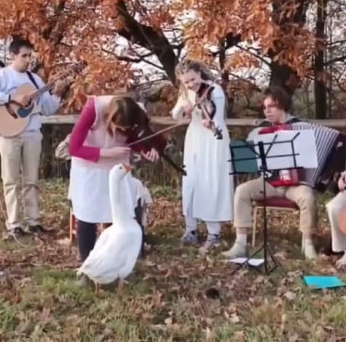 Во владимирской усадьбе «Богдарня» живёт гусь с настоящим чувством ритма — Юлий. Птица давно стала любимцем посетителей, а недавно и настоящей знаменитостью. Юлий обожает музыку и всегда оживляется, когда звучат мелодии. По словам сотрудников усадьбы, стоит только заиграть оркестру, как пернатый артист начинает «танцевать» и издавать звуки в такт. Недавно специально для Юлия организовали его первое сольное выступление. Гусь не подвёл: под аккомпанемент живой музыки он эффектно «пропел» и продемонстрировал завидное чувство ритма. Гости усадьбы встретили концерт с восторгом — аплодисментами и смехом. Видео выступления мгновенно разошлось по соцсетям, сделав Юлия новой интернет-звездой.