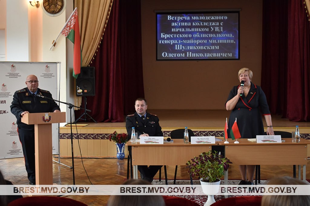 🔴Открытый диалог о безопасности #Милиция_Беларуси #из_графика_начальника_УВД 👮🏻♀️Сегодня начальник УВД Брестского облисполкома генерал-майор милиции Олег Шуляковский посетил УО «Барановичский технологический колледж» Белкоопсоюза. Визит был направлен на установление открытого диалога между правоохранительными органами и образовательным учреждением. В начале встречи Олег Шуляковский пообщался с администрацией колледжа, ознакомился с организацией учебного процесса и обсудил общую обстановку в учреждении. 🗣Обращаясь к учащимся, начальник областного управления подчеркнул важность подобных встреч: «Особенность нашей белорусской системы правоохранительных органов в том, что большая часть нашей работы направлена на профилактику правонарушений и преступлений. Поэтому для нас крайне необходим открытый диалог с подрастающим поколением. Подобные встречи позволяют не только донести важную информацию, предостеречь от необдуманных поступков, но и услышать ваше мнение, понять ваши взгляды н