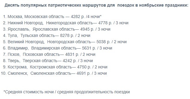 Самым популярным патриотическим направлением в 2025 году оказалась Москва — средняя стоимость проживания здесь составила 17 128 рублей за четыре ночи. Замкнул десятку Смоленск, где поездка на три ночи обошлась туристам в среднем в 14 100 рублей. В числе лидеров также оказались Нижний Новгород (4778 рублей за сутки) и Ярославль (4945 рублей за сутки).