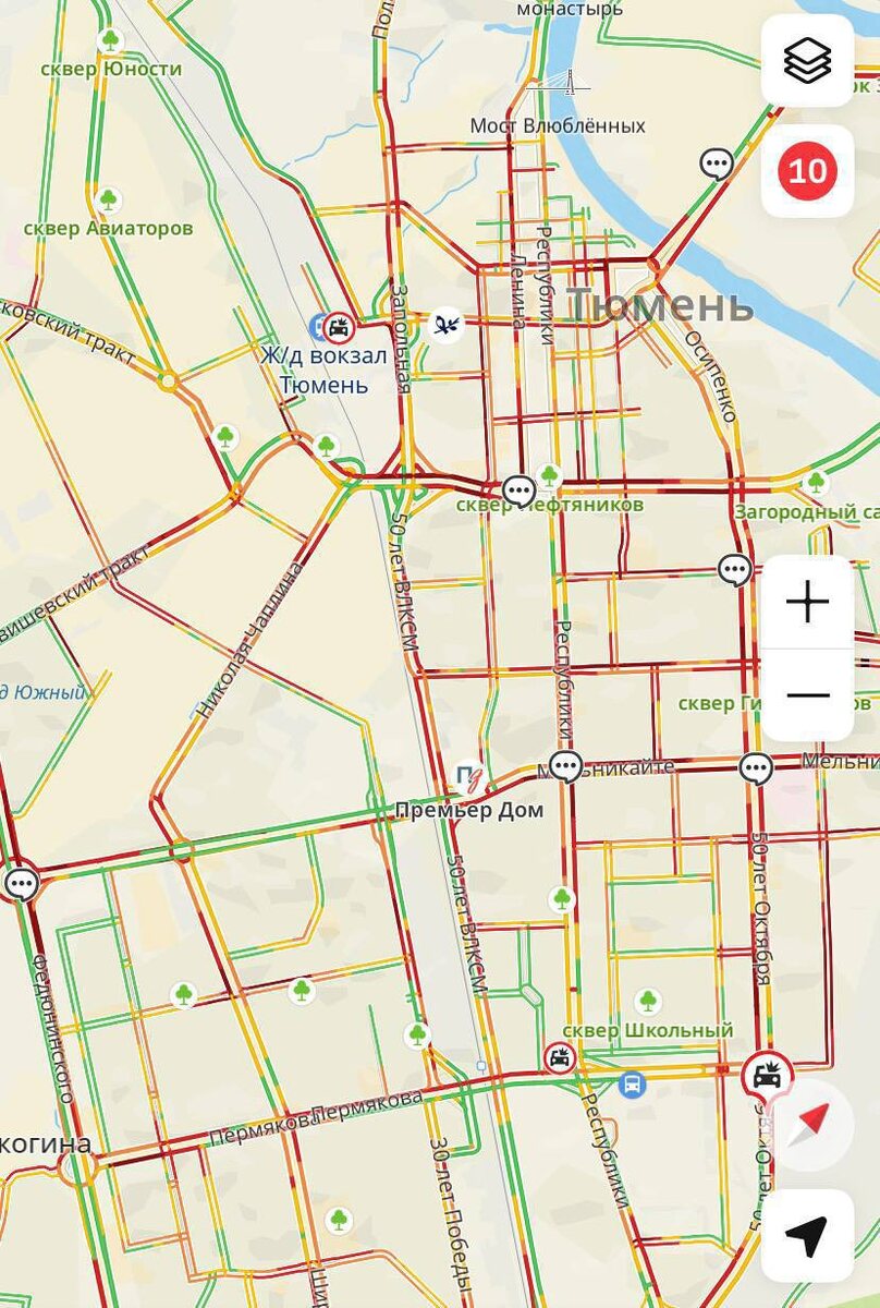 Тюмень встала в уже 10-бальные пробки.
