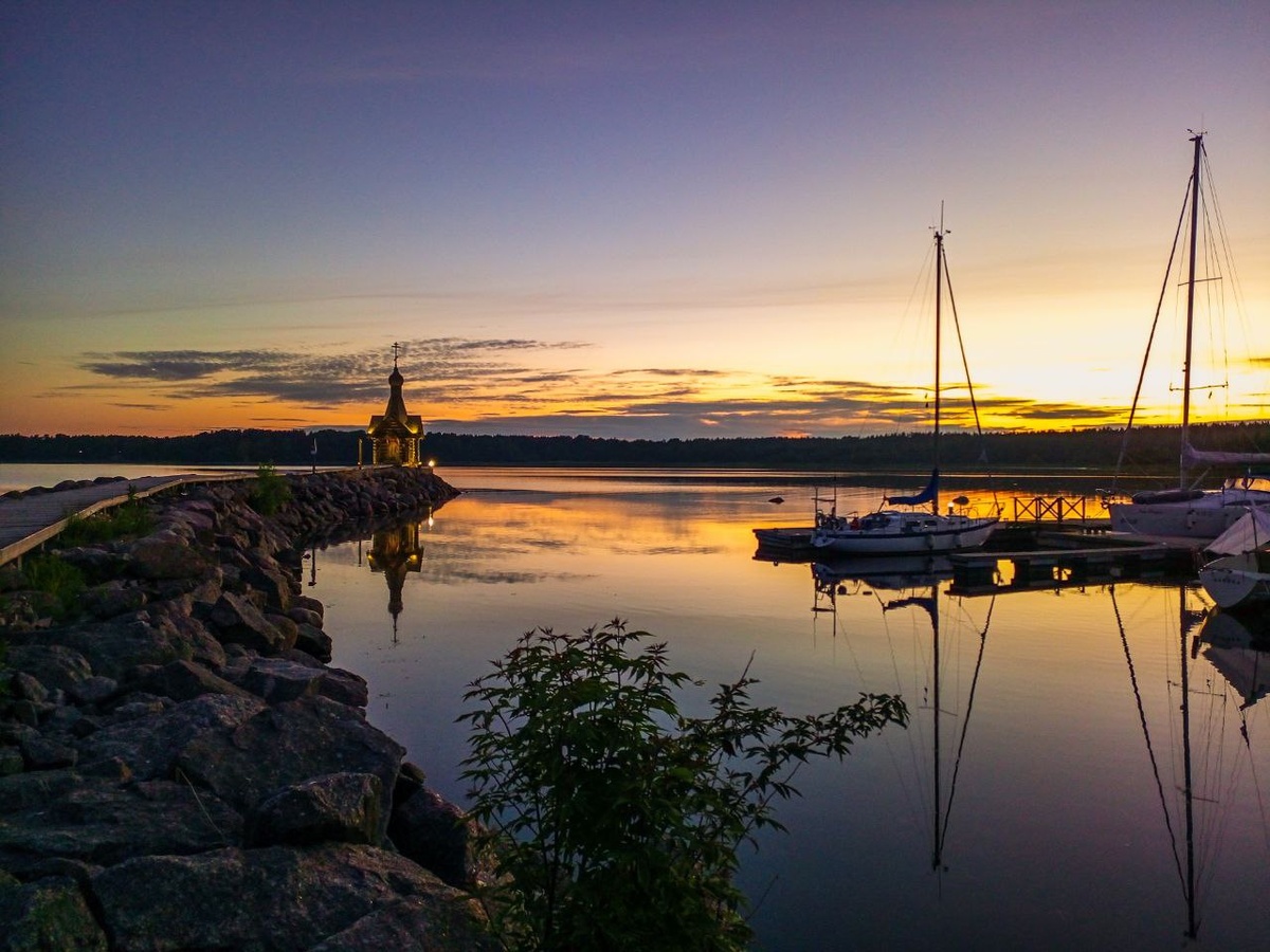 Закат на Финском заливе. Однажды, в походе к Бухте Жëлтой проходили вот такой красивый причал с часовней. Проводили там солнце, а потом пошли к намеченной точке на маршруте.