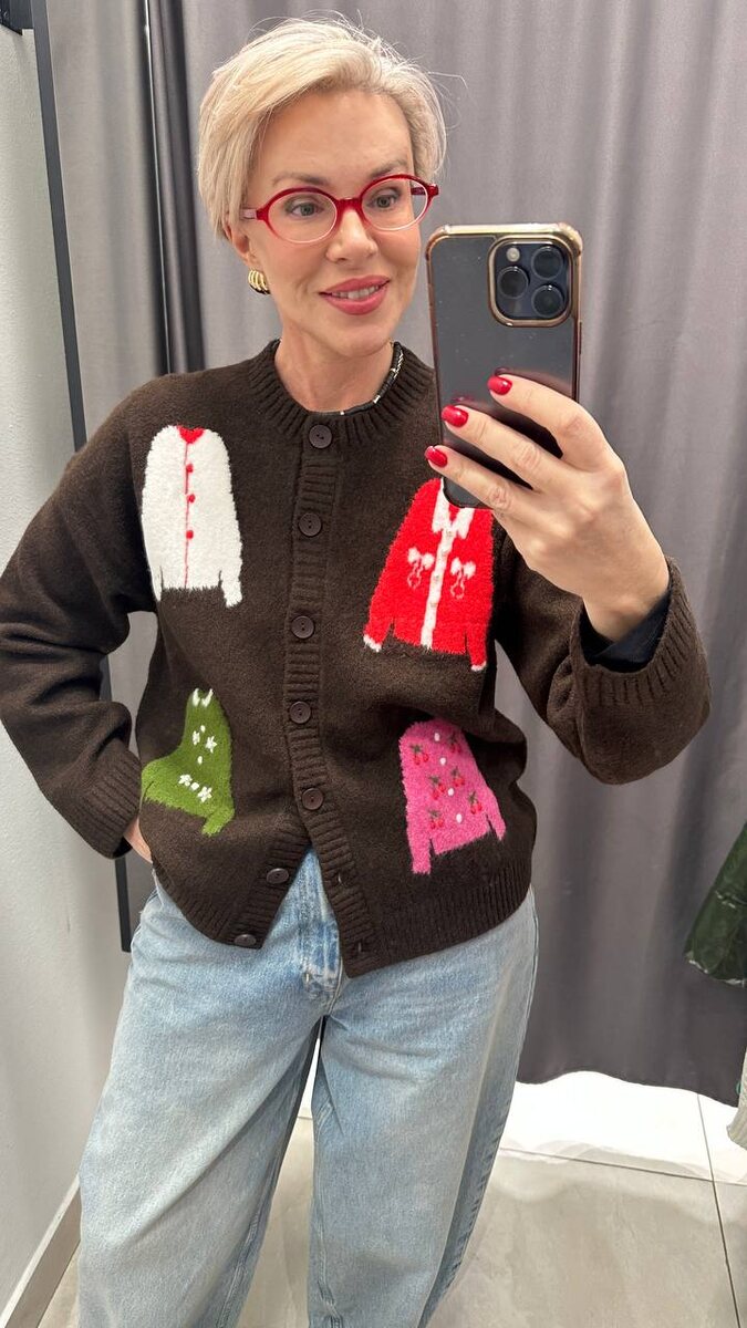 Здравствуйте, дорогие читатели! У брендов уже вовсю начинают появляться новогодние коллекции, и сегодня у нас будет праздничный обзор новинок от Sela. Однако внимание я уделю не только вечерним нарядам, но и модной повседневной одежде. Не забывайте ставить лайк за мои старания! Помните этот креативный кардиган из прошлого обзора? Многим он понравился. На всякий случай оставлю ссылку на него еще раз. Еще больше одежды из Sela с моей примеркой в этой статье: Давайте начнем с повседневной (но креативной) одежды. Нежный вязаный кардиган с объемными клубничками. Ссылка Аналогичная модель с вишенками. Умоляю, только не пишите, что кардиганы детские. Ссылка Появились интересные джинсы с трендовым оленьим принтом. Ссылка Если одежда с анималистичным принтом - это не ваше, то присмотритесь к аксессуарам. Например, к зиме пригодятся стильные варежки. Ссылка Переходим к нарядной одежде. Те, кто думал, что шаровары остались в летнем сезоне и уже не в моде, ошиблись. Такие брюки очень даже актуальн