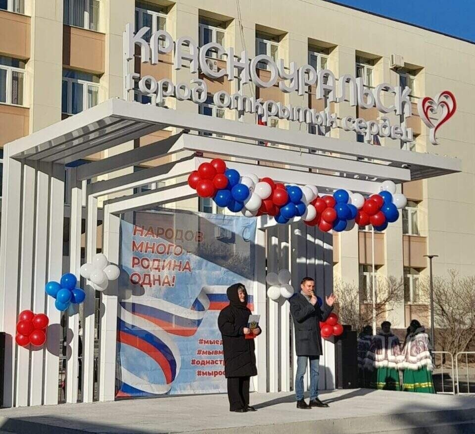 «Народов много - Родина одна!»… …под таким девизом 4 ноября на обновлённой площади Победы у администрации Красноуральска состоялось массовое мероприятие, посвящённое празднованию в России Дня народного единства. Принимала в этот день артистов Дворца культуры "Металлург" и новая сценическая площадка - народный коллектив, хор "Рябинушка", ансамбль "Сударушка", танцоров ансамбля "Марион" и других. С приветственной речью к собравшимся обратился глава муниципалитета Дмитрий КУЗЬМИНЫХ, а звуки гимна нашего государства придали событию особенную атмосферу торжественности. Погода радовала ярким солнцем и приятным морозцем. Молодые волонтёры развернули интерактивные развлечения на ловкость, сообразительность, знание географии и истории России. Программа праздника привлекала народ угощениями национальной кухни. Здесь постарались студенты Красноуральского многопрофильного техникума, представив ярмарку "Иван да Марья" с ватрушками и пирожками. Желающие угощались кашей, горячим ч Показать полност