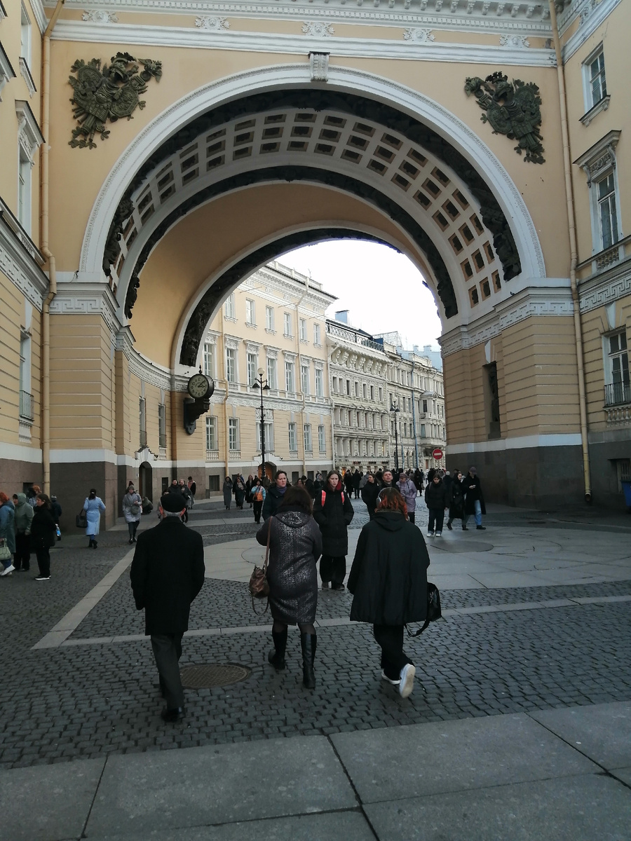 Поехали на Казанскую в Казанский собор. И редкий случай,когда не вспомним слова двоюродного братца-ленинградца.Проезжая мимо собора,этот мальчик громко провозглашал:"Следующая остановка-Казанский Забор!" От Казанского прошли по каналу Грибоедова. Дошли до Адмиралтейства.И опять вопрос:"К Коньку-горбунку пойдем?" И смеемся,вспоминая. Саша,5 лет -А где у нас Иван? -Какой Иван? -Да Иван Дурак! Бабушка (в недоумении)-И где он у нас?! -Да,вот (указывает на тарелку) на Коньке -Горбунке скачет ! Прости нас,Петр Алексеевич...И Этьен Морис Фальконе прости... Не пошли к Медному всаднику,а отправились в Эрмитаж,как и наметили ранее . Про выставки и экспозиции расскажем чуть позже и очень подробно.Очень много впечатлений! А пока опять про детей.На экспозиции памяти ювелира Карла Фаберже многолюдно, и посетители с детьми,т к каникулы и праздники . И вдруг слышим громкое:"Мама,мама,смотри какая сковородка!" И опять смеемся вспоминая свое,т.к тоже в Эрмитаже , знакомили с ним младшую дочь и