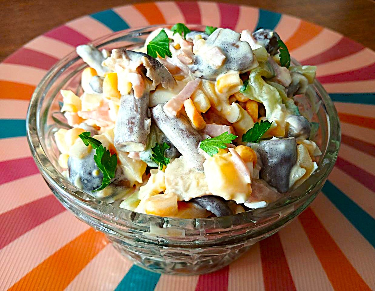 Вкусный салат с опятами и ветчиной. Просто и вкусно!