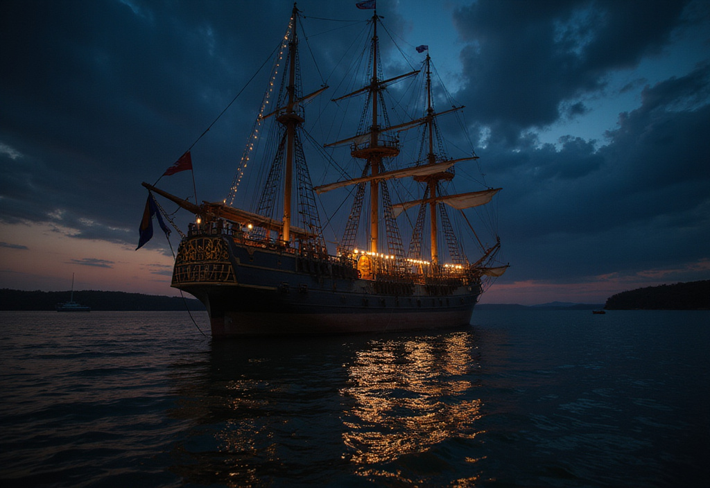 Гость из Пустоты. Корабль застрял в тумане. Не в том, что стелется по болотам, а в ином, густом, как смола, и беззвучном. Он поглотил фрегат «Святая Елизавета» у самых берегов, вырвав его из привычного мира и бросив в молочную, мертвенную пустоту, где не было ни волн, ни ветра, ни времени. Царь Пётр Алексеевич, сжимая в белой от напряжения руке корабельный топор, стоял на шканцах. Его гигантская фигура, обычно готовая сокрушить любую преграду, сейчас казалась маленькой и хрупкой перед этим безмолвием. Команда, бледная как полотно, крестилась, глядя в непроглядную пелену. Было тихо. Слишком тихо. Не слышно было даже скрипа снастей. И тогда из тумана родилась тьма. Она была плотнее окружающей мглы, осязаемая, живая. Она стекала с невидимых рей на палубу, как чёрная смола, и сгущалась в центре, принимая форму. Это был человек, закованный в угольный доспех, монументальный и неестественный. Его лицо скрывал шлем с бездушными окулярами, а дыхание вырывалось наружу мерным, металлическим пред