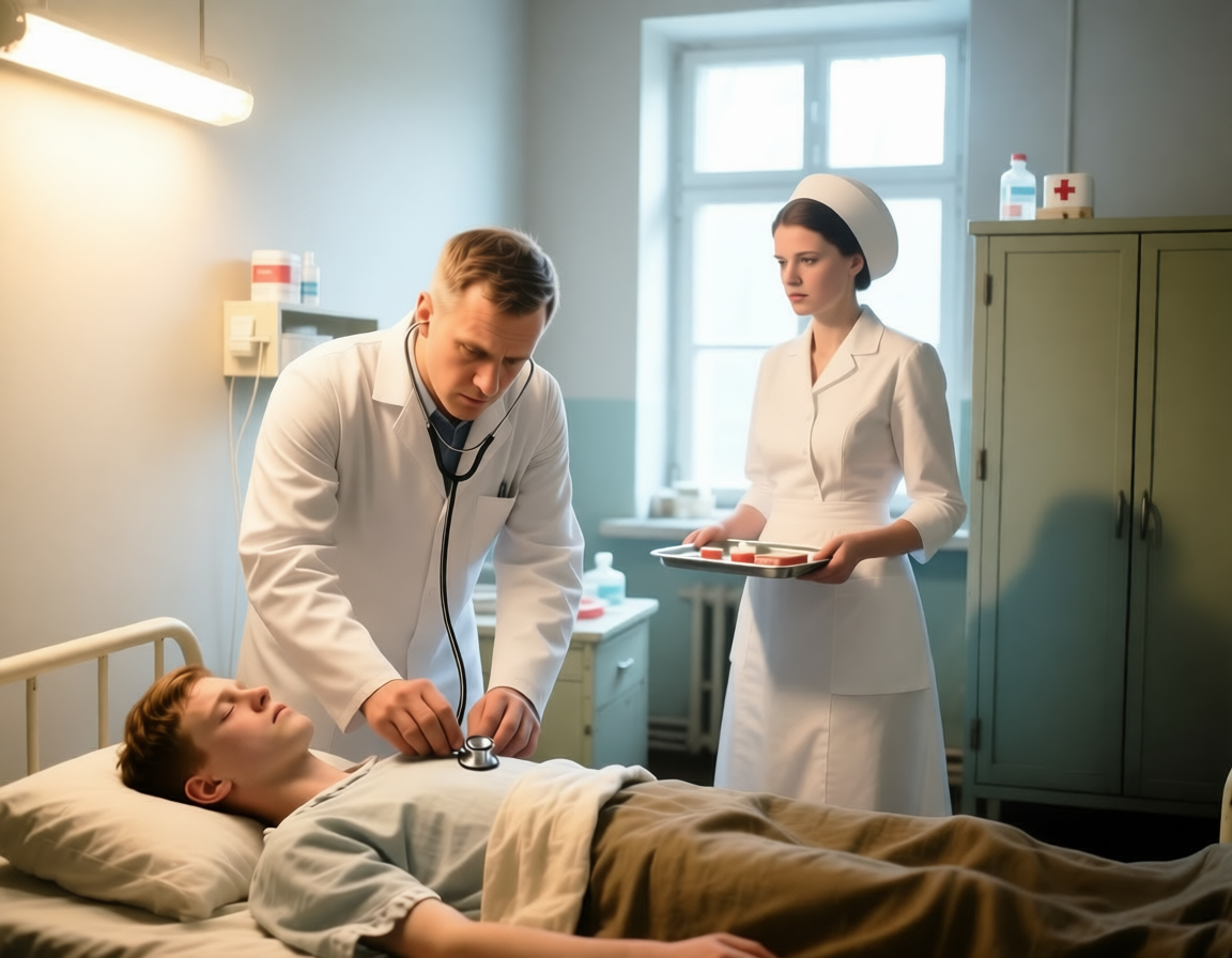 Ренат Евграфович прошел в свой небольшой кабинет, натянул чистый медицинский халат. Ткань, ложась на плечи, тут же преобразила его, придав вид строгого, компетентного руководителя. «Ничего, наверстаю упущенное и даже больше», – решил он, вспомнив, что его отделение – самое спокойное в прифронтовом госпитале. Сюда попадают не с рваными осколочными ранениями, требующими немедленной хирургии, а с медленной, изнуряющей патологией. Тяжелые пневмонии от сырости, грипп, обострения язв и гипертонические кризы, вызванные постоянным нервным напряжением. А еще здесь лечили то, что врачи цинично называли «окопным синдромом» – психосоматику, замаскированную под боль в сердце или желудке, которая была не чем иным, как физическим криком сломленной психики.