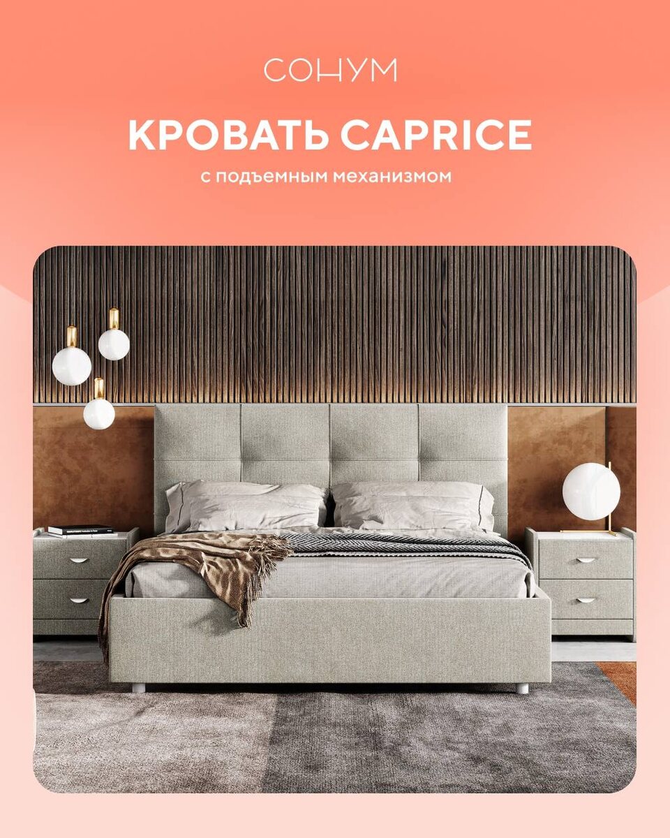🛌 Кровать в современных интерьерах - не только стильный акцент, но и умное решение для организации пространства! ✨ Например, кровати с подъемным механизмом позволяют скрыть в себе подушки, одеяла и другие вещи, освобождая место в комнате. Это особенно актуально для небольших помещений, где каждый сантиметр на счету. Модель Caprice идеальный пример такой многофункциональности. С её эффектным декоративным кантом и качественным ДСП она станет настоящим украшением спальни. При необходимости вы можете выбрать разборное или неразборное металлическое основание с ламелями. Таким образом, ваша кровать не только обеспечит комфортный сон, но и поможет поддерживать порядок в комнате! 💕 sonum.ru/catalog/krovati