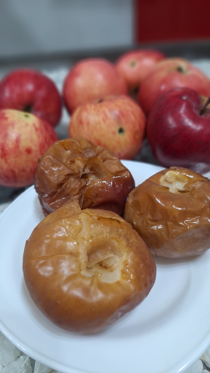 Моя внутренняя сладкоежка требует чего-нибудь вкусненького и я подсела на запеченные яблоки. Мне нравится ощущать их нежную, кремовую текстуру с мягкой кислинкой и умеренной сладостью. Но запеченные яблоки не только вкусные, а это и природный доктор. У людей с проблемным ЖКТ свежие яблоки часто вызывают газообразование, неприятные ощущения в желудке, боли. А с запечеными яблоками такого не происходит. При воздействии температуры в них запускается целая цепочка химических превращений: 1.Частично нейтрализуются органические кислоты — яблочная, лимонная, винная. И яблоки становится “мягкими” не раздражают слизистые. 2.Грубые волокна клетчатки расщепляются на более короткие цепочки. Благодаря этому они не травмируют слизистую кишечника. И для их расщепления поджелудочная не работает с натугой. 3. А самое важное: после разрушения грубых волокон освобождается ценный пектин. Это тоже клетчатка, но растворимая. После запекание пектин превращается в кремообразное в