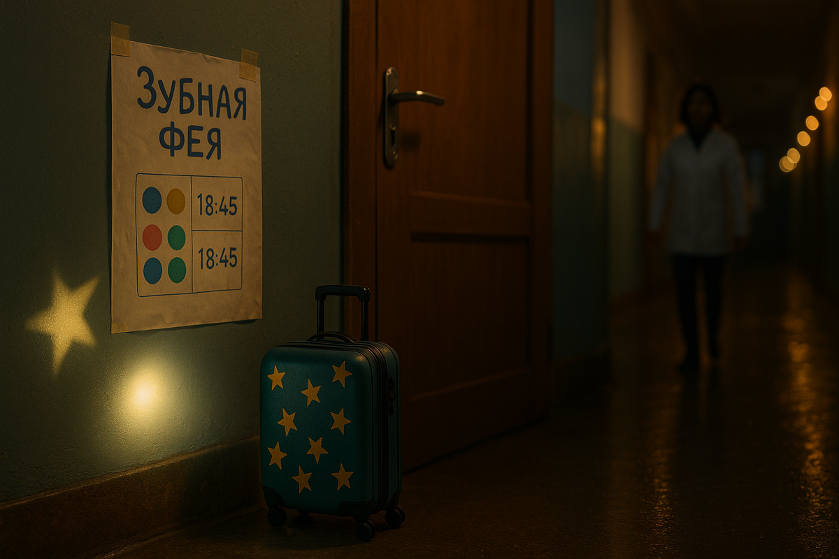 На двери нашего приюта висит лист с цветными кружочками. Под заголовком «Зубная фея» — аккуратные квадраты: вторник и четверг, 18:45. Дети каждый раз проверяют, будто это премьера кино. На самом деле кино начинается в коридоре, когда за углом появляется чемоданчик на колёсиках с наклейками в виде звёзд и маленькая женщина в белой куртке, которую зовут Марина Сергеевна. Днём она обычный врач в городской поликлинике, а вечерами — наша фея, которая не машет палочкой, а лёгким стуком деревянного шпателя по стеклянному стаканчику даёт сигнал: «Тук‑тук… Игровой кабинет открыт».