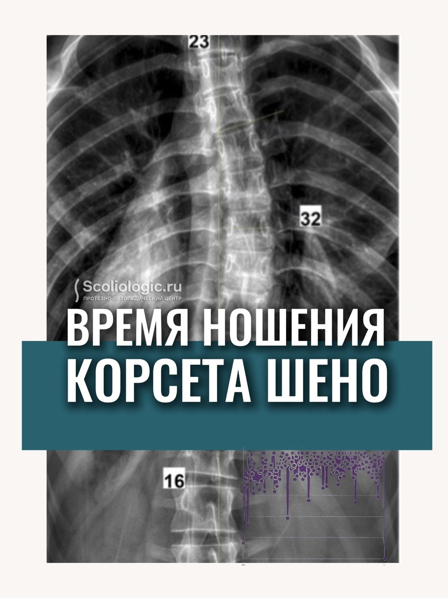 Доказано, что на первичных этапах лечения ношение корсета менее 16 часов в сутки либо вовсе не даст результата, либо даст минимальный результат в виде более медленного прогресса увеличения сколиотических дуг.
