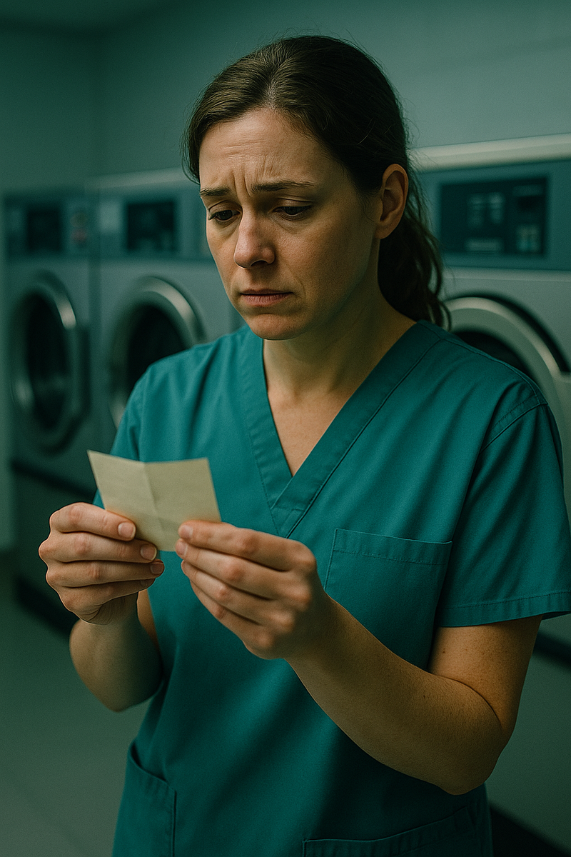 Ольга нашла записку случайно. Стирала дома рабочие халаты – три белых, застиранных до серости, с пятнами, которые не отстирываются уже годы. Перед загрузкой в машину проверяла карманы – привычка медсестры. Обычно там находились ручки, бахилы, иногда забытый телефон.