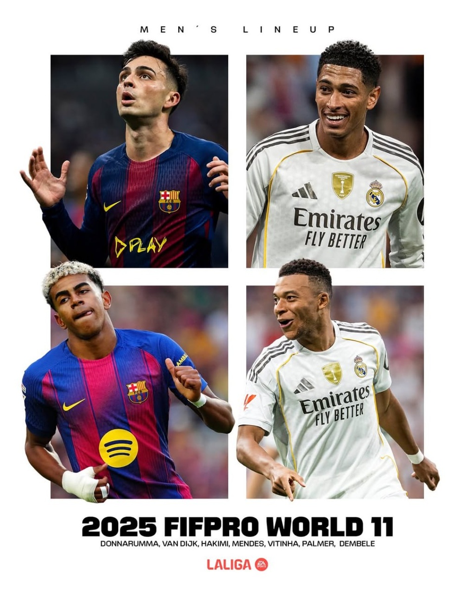 От 🇪🇸 LALIGA 4 игрока представлены в сборной FIFPRO года