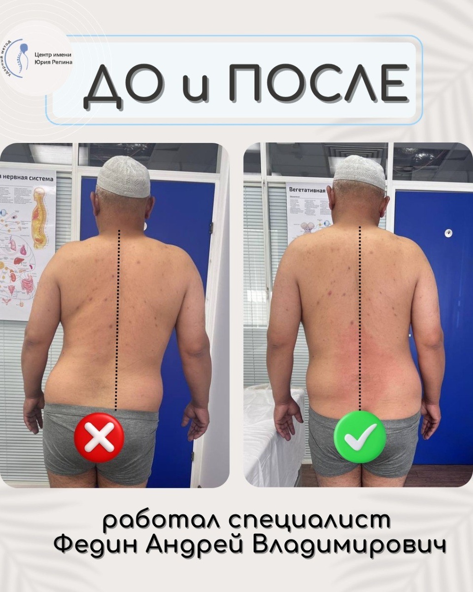📍 Результат после приёма в Центре имени Юрия Репина Пациент обратился с жалобами на боль в левой ноге и ощущение выраженного дискомфорта в спине. Во время осмотра специалист отметил нарушение оси тела и смещение позвоночника, из-за чего нагрузка распределялась неравномерно. После коррекции по методу Юрия Репина ось позвоночника выровнялась, тонус мышц стабилизировался. Боль в ноге ушла, движения стали свободнее, а стоять и выпрямляться комфортно. 🩺 Метод Юрия Репина направлен на восстановление анатомически правильного положения позвонков без инструментов и без операций, только точная работа рук и глубокое понимание тела. Работал специалист Центра им. Юрия Репина Федин Андрей Владимирович 📞 Единый телефон по РФ: +7(800)-550-47-47 📞 Для стран СНГ: +7(499)390-17-90 📝 Онлайн-запись: http://n458139.yclients.com/ 🌐 Сайт: https://massagerepin.com 📍 Филиалы Центра: Москва — ул. Марьинский парк, д.39, корп.2 / Серебряный пер., д.5 Санкт-Петербург — Лиговский пр., 261 Самара — ул.