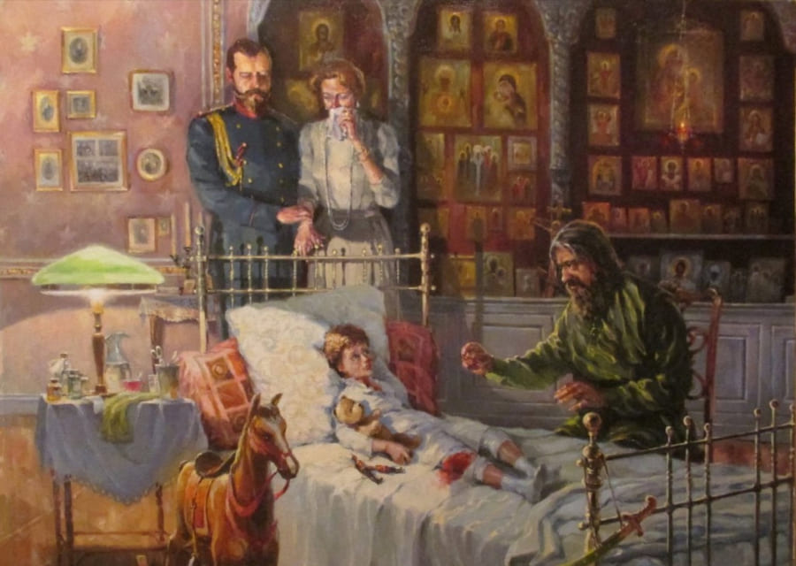 Цесаревич Алексей, оступившись, получил травму. У него началось внутреннее кровоизлияние в паху. Состояние было настолько критическим, что врачи признали свое бессилие, и семья готовилась к худшему. В отчаянии Александра Фёдоровна послала телеграмму Распутину в Сибирь.