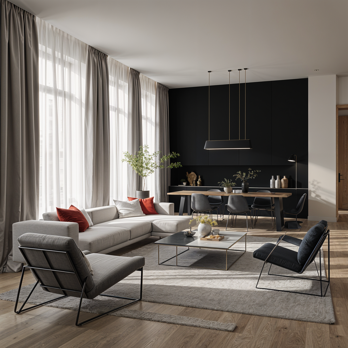 На готовой визуализации, чтобы достичь желаемого результата, можно экспериментировать с помощью лучших ИИ-сервисов, меняя цветовые решения и детали интерьера, которые гармонично впишутся в общую композицию. Такой подход делает процесс создания интерьера плавным, продуктивным и вдохновляющим.