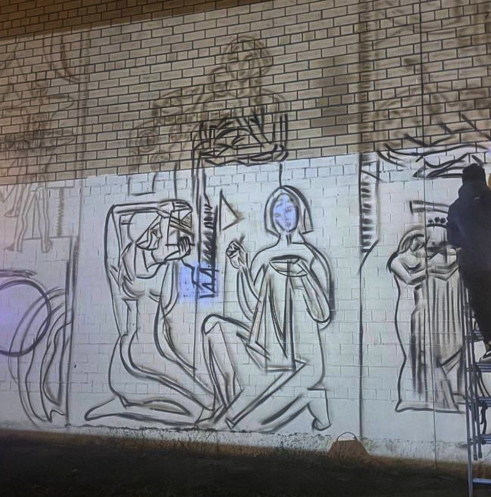 Сегодня ночью художник Владимир — автор известного граффити ко Дню Победы в сквере на улице Воронина — приступил к нанесению эскиза нового мурала на фасаде в Пироговском - рассказал Артур Суворов. Это не просто рисунок. Мы воссоздаём изображение со стены снесённого здания, возвращая к жизни память о ткацкой фабрике и людях, которые долгие годы здесь работали. В ближайшие дни роспись будет завершена.