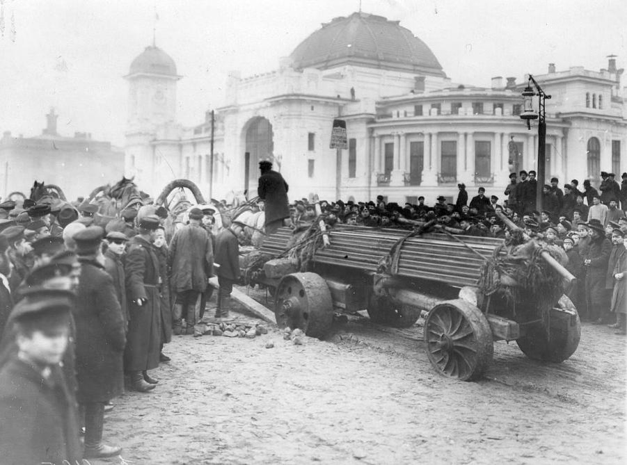 Витебский вокзал (ранее Царскосельский, Детскосельский). Вид примерно с линии домов 47–49. Слева у вокзала часовая башня. Первый вокзал в России. Что логично, отсюда же стартовала первая железная дорога общего пользования России. 30 октября 1837 открылась Царскосельская дорога Петербург — Царское Село/Павловск. На фото обновленное каменное здание вокзала — шедевр петербургского модерна (арх. С. А. Бржозовский), открыто 1 августа 1904. Изначально вокзал строили деревянным с расчётным сроком эксплуатации в пару лет. В 1849-1851 годах было построено новое двухэтажное каменное здание вокзала архитектора К. А. Тона. Рядом располагался Семёновский плац: здесь проводили казни (например над народовольцами в 1881-м или "инсценировка казни" над петрашевцами), а в 1962 на его месте открыли ТЮЗ и появилась Пионерская площадь.