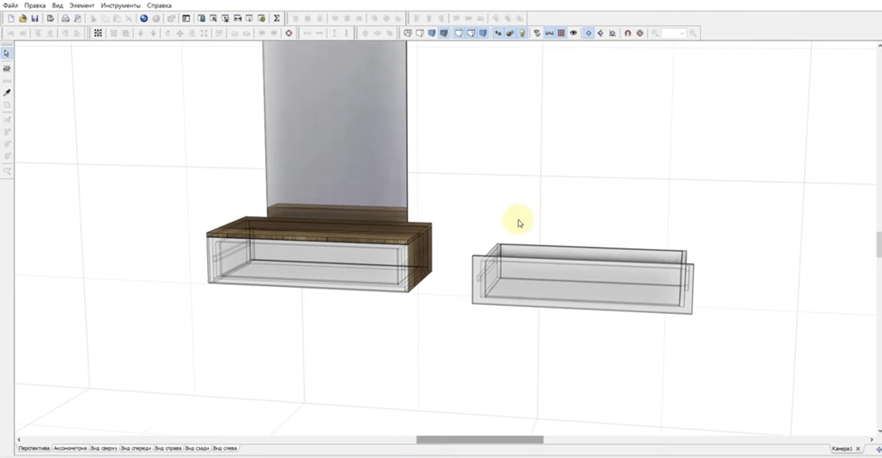 Всем привет. Меня зовут Виктория и в этой статье я расскажу, как за 5 минут создать выдвижной ящик для мебели в программе PRO100. Этот навык пригодится всем, кто проектирует кухни, комоды, шкафы, столы и вообще любую корпусную мебель. В конце статьи я поделюсь фишкой, которая сэкономит вам кучу времени в будущих проектах. Переходим в левый нижний угол комнаты - там удобнее всего работать. Нажимаем «Новый элемент», кликаем на стену, где будем его размещать. Дважды щёлкаем по элементу, открываем вкладку «Размеры» и задаём: ● Ширину – 16 мм (толщина ЛДСП), ● Высоту – 150 мм, ● Глубину – 400 мм. Жмём Enter - готова первая боковая стенка ящика. Теперь копируем стенку: зажимаем левую кнопку, кликаем правой и двигаем вправо. Сразу создаём ещё одну копию - её нужно повернуть на 90° (Ctrl + R) и прижать к стене. ⚡ Совет: если элемент не прижимается - значит, вы смотрите на сцену не сверху. Поверните камеру, чтобы видеть изделие под прямым углом, и всё получится идеально ровно. Теперь выделяем о