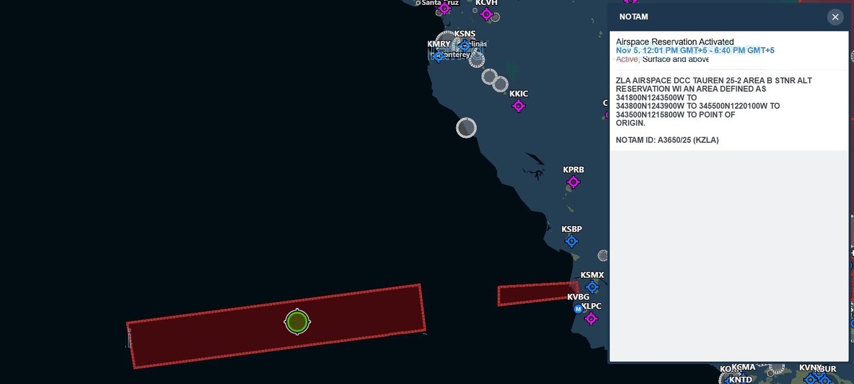 Всё началось 4 ноября 2025 года, когда в 4:34 утра по местному времени в соцсетях появилось сообщение о первом NOTAM — A3647/25 (KZLA), изданном для зоны ограниченного доступа W532N. Зона активировалась с 22:00 UTC 3 ноября до 7:00 UTC 4 ноября и простирается до высоты FL600 (60 000 футов, или около 18 км).