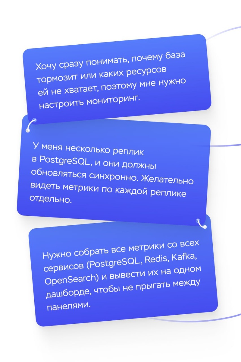 Добавили поддержку Prometheus экспортеров для всех баз данных. Prometheus — стандартный формат, который поддерживает популярные инструменты мониторинга и алертинга, такие как Prometheus сервер и Grafana. И да, теперь вы сами можете собирать дашборды, подключать оповещения и наблюдать за состоянием баз данных в реальном времени. Как настроить → в доке Что еще нужно знать: ➖ Сейчас метрики можно собирать, если база находится в приватной сети на основе BGP — это работает для всех типов баз данных. ➖ Если у базы включена репликация (например, в PostgreSQL или MySQL), метрики можно собирать по каждой реплике отдельно. ➖ Приватные IP всех реплик отображаются во вкладке «Дашборд» конкретной базы в панели. 🫰В будущем появится возможность подключать экспортеры из публичных сетей с https и авторизацией, а список сервисов поддерживающих формат Prometheus будет расширяться. Собрать метрики со своей базы →
