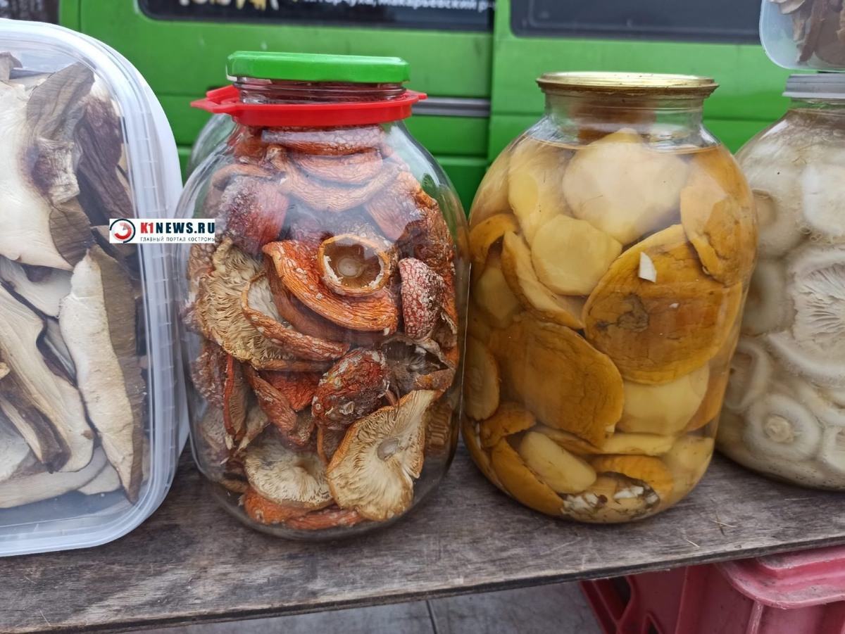 Красные шляпки с белыми горошками старательно высушивают и продают. Просят за небольшой лоточек от 1000 рублей. Для сравнения: за такой же лоточек белых грибов торговцы хотят получить 1300-1500. Как оказалось, этот ядовитый гриб популярен не только у лосей, которые его считают лакомством. Продавцы говорят, что пожилые костромичи и туристы берут мухоморы не менее активно, чем маринованные грузди и белые грибы. Странный выбор, не правда ли? Ведь в специальных справочниках мухоморы внесены в список ядовитых. Но в народе бытует мнение, что настойки из мухоморов помогают в качестве примочек для больных суставов. А кое-кто их в малых дозах и внутрь принимает. Тем не менее, мы все-таки — за традиционную медицину, на сомнительные эксперименты не идем и своим читателям не советуем.