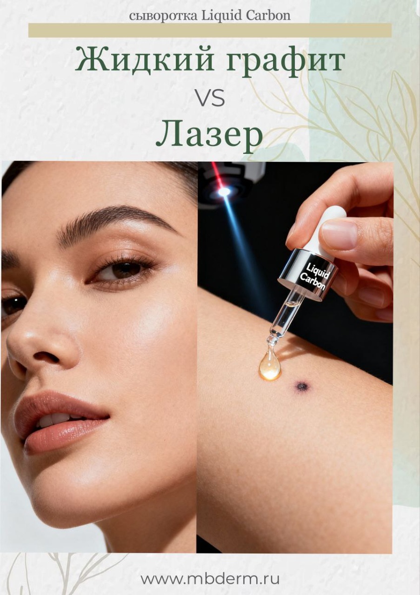 ▌ Почему сыворотка Liquid Carbon на основе жидкого графита эффективнее лазерного удаления невусов? При выборе метода устранения новообразований важно учитывать не только эффективность, но и безопасность процедуры. Сыворотка Liquid Carbon, созданная на основе уникального компонента — наномолекулярный гидросульфат графито-углерод , становится оптимальным решением благодаря ряду существенных преимуществ перед традиционным лазерным методом. ▌ Преимущества сыворотки Liquid Carbon: ▌ ✅ Безболезненность Процедуры с простым нанесением сыворотки безболезненны и комфортны для абсолютного большинства пациентов, поскольку исключают нежелательный запах палёной кожи и необходимость обезболивания. ▌ ⚡️ Быстрое восстановление Время заживления заметно короче, чем после лазерного воздействия. Пациенты быстрее возвращаются к привычному образу жизни без ограничений активности. ▌ 💎 Точность и избирательность воздействия Liquid Carbon воздействует исключительно на поражённые клетки, не затрагивая з