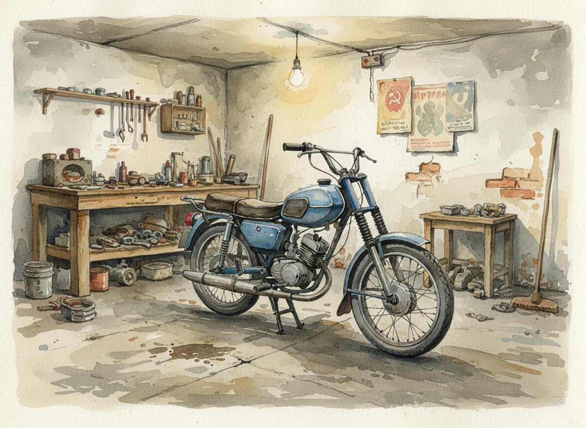 У меня никогда в жизни не было мопеда. Единственная возможность покататься на нем была на Кубани, куда мы приезжали летом и где у дядьки была «Рига». Но как-то так сложилось, что старший брат постоянно крутился с мотоциклами и с раннего возраста я стал засиживаться в компании взрослых ребят, перебирающих своих двухколесных коней. Когда мне было 11 лет у брата был Минск. Как сейчас помню его меховое седло. Потом брат ушел в армию, а у меня началась своя собственная мотоциклетная история, не прекращающаяся до сих пор. Спустя уже 35 лет... Не поверите, но Ява-638 действительно стояла у нас с братом в комнате. Пусть не с коляской, но именно так — прямо перед окном. Где-то в семейном архиве даже есть фото этой «инсталляции» в зимнее время. Тогда гаража еще не было, а ставить в подвале новый мотоцикл было стремно. Так он оказался дома. Но до Явы-638 у меня были Восход-3М, потом еще один Восход-3М, потом я ездил на Иж Планета-5, и только потом появился «Банан», на выхлопные трубы которого мы