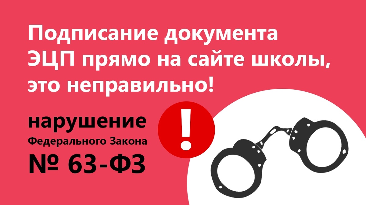 Подписание документа ЭЦП прямо на сайте школы, это не правильно!