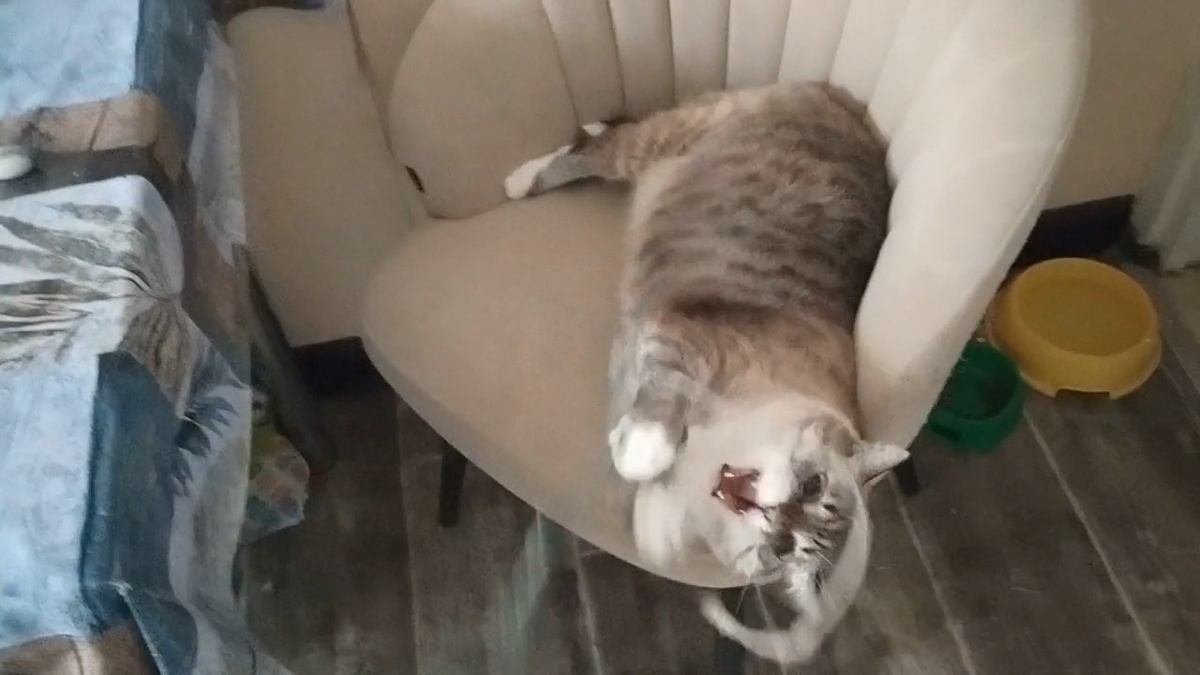 Оба котярских играют со мной в дурацкую верёвочку. Играют, принципиально, лёжа. Пухлый Беляшик ловит куда лучше чем юная Тигра. Он - настоящий, прирождённый, лежачий охотник. На нашей кухне, Белка находится в своей естественной среде обитания, тут можно всё делать лёжа. Даже охотиться. Ссылка на видео в ОК: