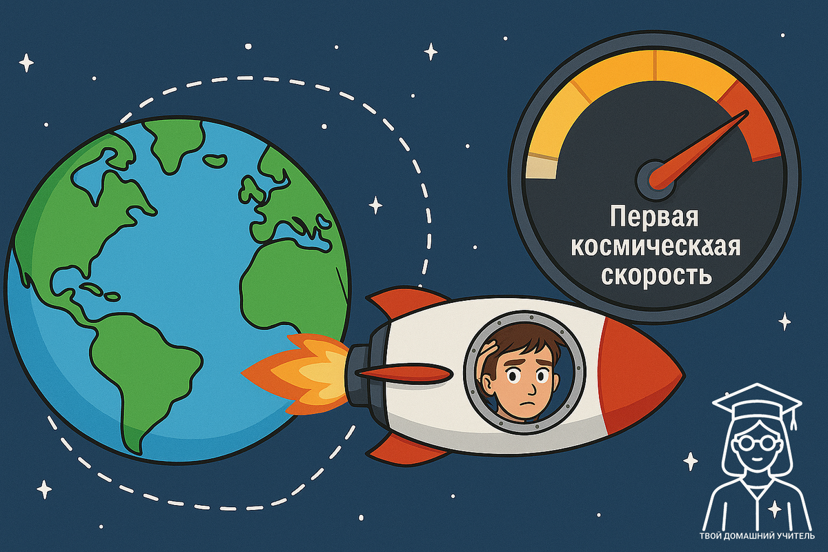 Привет всем, кто жаждет знаний! 👋 В прошлый раз мы открыли для себя закон всемирного тяготения. Сегодня поговорим об еще одной очень интересной вещи – космических скоростях. Сразу отмечу, что их всего четыре, но здесь мы рассмотрим только первую и вторую космические скорости. Прежде чем приступить к чтению, подписывайтесь на мой телеграм-канал, там я выкладываю (буду выкладывать😅) много интересного. Для начала давайте проговорим, что первая космическая скорость, это скорость, которую необходимо сообщить телу в горизонтальном направлении, чтобы оно облетало Землю по низкой круговой траектории, то есть стало искусственным спутником Земли. Рассчитать первую космическую скорость можно следующим образом. Как было сказано выше, обладая первой космической скоростью, тело будет облетать Землю по круговой траектории. Вспомним, что любое тело, двигаясь по окружности, всегда испытывает на себе центростремительную силу: 📌Центростремительная сила – это сила, под действием которой тело движется