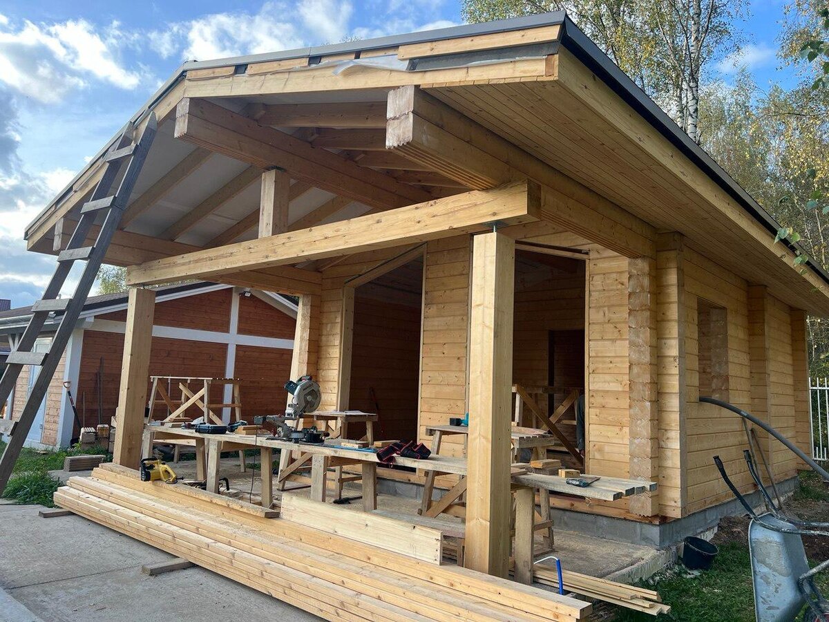 🧱 Новости со стройки: баня по индивидуальному проекту из клееного бруса почти готова к внутренней отделке