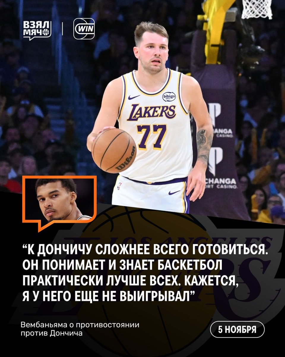 🤔 Виктор Вембаньяма ещё не побеждал Луку Дончича 🗣 «К Дончичу сложнее всего готовиться. Он понимает и знает баскетбол практически лучше всех. Кажется, я у него еще не выигрывал». Француз проиграл в 4 очных встречах со словенцем. Кто победит в предстоящей игре? Смотрим матч «Лейкерс» против «Спёрс» сегодня в 6:00 вместе на Взял Мяч 👀 🏀 ПОДПИШИСЬ — ЗДЕСЬ ЖИВЁТ БАСКЕТБОЛ!