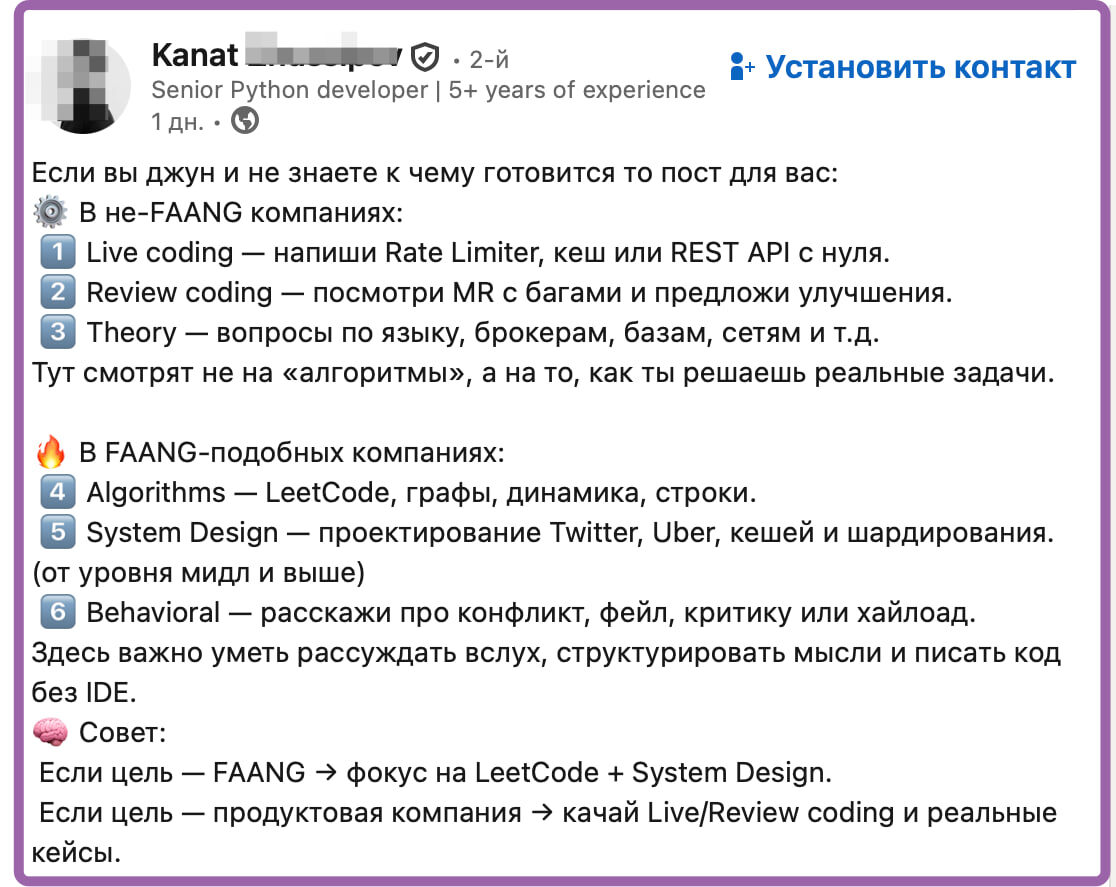 Но мне кажется (могу ошибаться), что в условиях слегка перегретого рынка в ИТ, лучше будет прокачивать личный бренд через соц.сети даже программисту (помимо гита и т.п.). Если на вакансию 1000 откликов, то лучше получать предложения в личку т.к. вас знают, чем занимать очередь к рекрутеру...