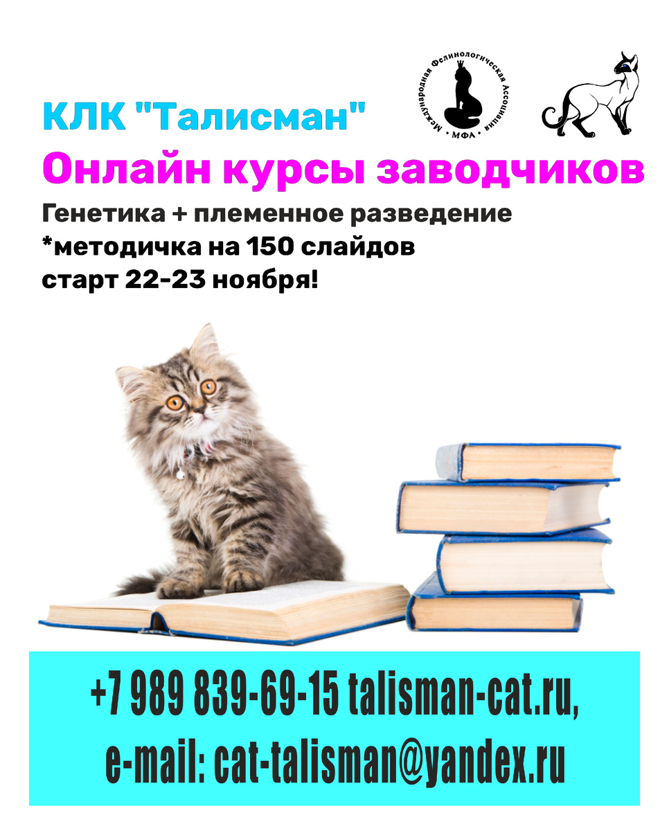 Открыт набор на курс «Общая генетика окрасов + племенное разведение» с получением сертификата* Заводчика-фелинолога