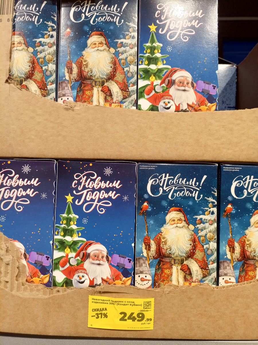 Всем приветик! В сети магазинов Магнит стали появляться сладкие новогодние подарки! Как замечено на практике, сейчас цены немного завышены, в начале декабря они просядут, ближе к новому году опять поползут вверх, ну и после нового года цены будут снижать вплоть до конца января. Проверено лично! Так что я пока не буду покупать сладкие подарки, подожду пока цены снизят. Магнит предлагает достаточно большой ассортимент сладких подарков. И так.... Хороший подарок со среднем наполнением 500 гр - 249 руб. (1 кг - 499 руб) В позапрошлом году брала такие племянникам, вполне нормально. Конфеты были не самых известных торговых марок, но вкусные и разнообразные. Основное количество конфет группы KDV (если кто знает, это сеть магазинов Ярче) + можно сделать поделку. Маленький подарок - презент с символом 2026 года. 150 гр - 99 руб. ( 1 кг - 660 руб.) Киндер набор 178 гр - 699 руб (1 кг - 3926 руб.) Ну тут цена за бренд! в первую очередь. Да, шоколад киндер вкусный, но таких денег мне кажется н