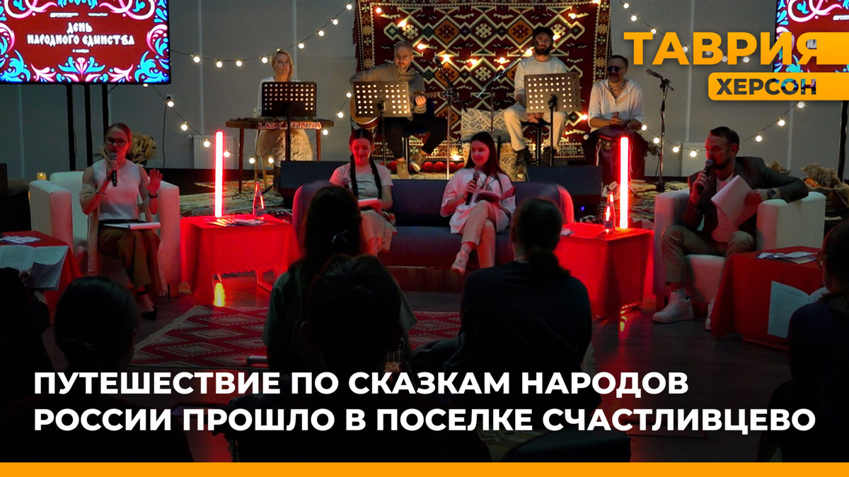 Путешествие по сказкам народов России прошло в творческом поселке Счастливцево арт-кластера «Таврида». В программе – чтение по ролям, взаимодействие с залом и музыкальное сопровождение, рассказали корреспонденты ТРК «Таврия». Сказка «Журавль и цапля» представила Новороссию и Донбасс. Две птицы все сватаются, да никак не поженятся. История учит искать компромиссы, взвешенно принимать решения. А еще видеть в других не только недостатки, но и достоинства. Дальше была адыгейская сказка «Сердце храбреца» о силе доброты, преодолении страхов и защите близких. «Это все отдельные частички единого формата. Именно за счет музыкального сопровождения, за счет профессиональности чтецов, за счет интеграции участников, гостей как чтецов – все это создает единую атмосферную картинку», – отметила Марго Гоголина, продюсер режиссерско-постановочной группы творческого поселка Счастливцево. Зрителями стала молодежь Новороссии, Донбасса, южных регионов России. Это участники программ творческого поселка. В ми