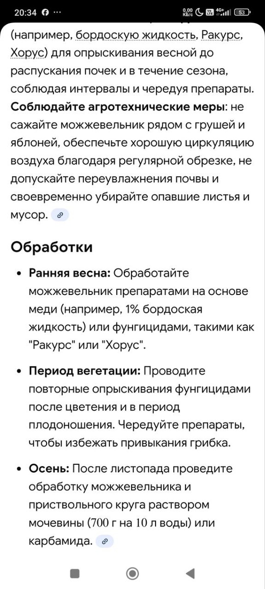 Будьте осторожны с ИИ! Задал вопрос: профилактика ржавчины на можжевельнике