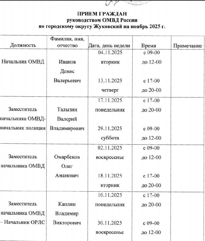 Полиция определилась с графиком приема граждан в ноябре. Прием проводится по предварительной записи по тел: 8 495 556 22 13
