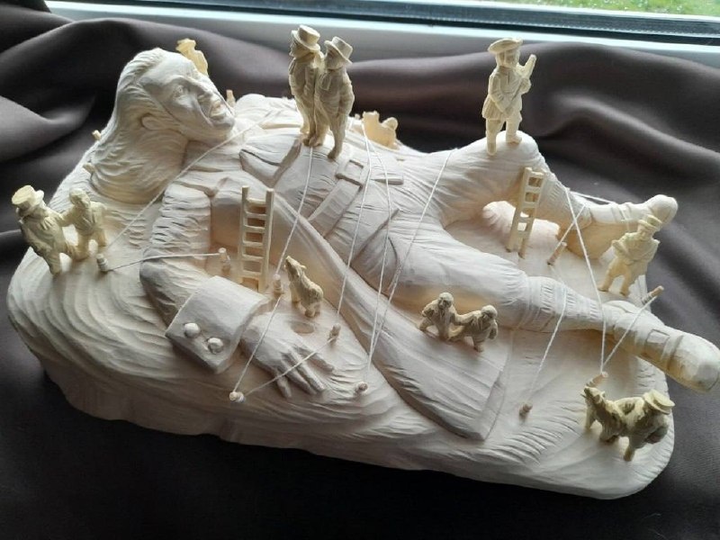 Мастер Богородской резьбы Олег Моргасов создал необычную скульптуру Гулливера