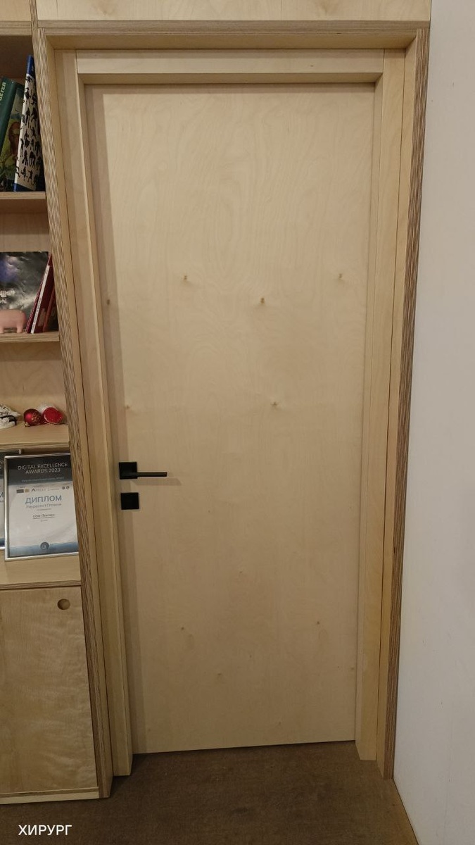 Сначала были проходные порталы в стеллаже - перегородке, которые делил помещение на два небольших. Через время решили в порталы установить двери