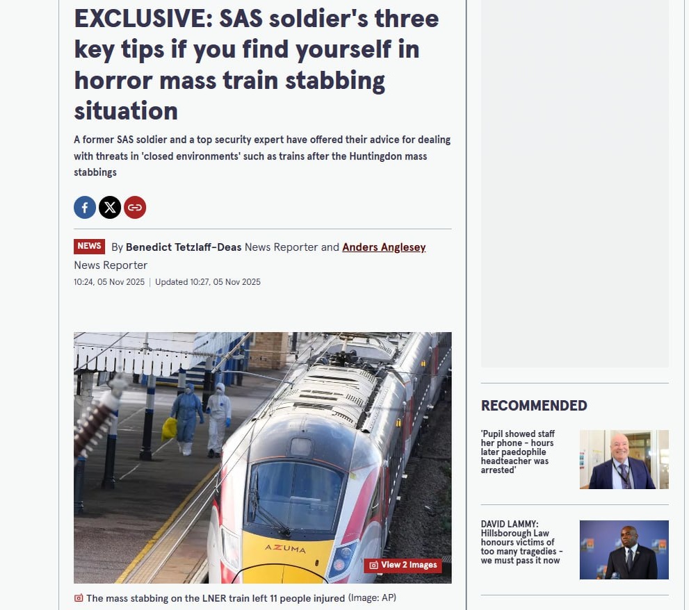 Будни британской жизни. Ветеран спецназа дает советы на случай «если вы оказались в ужасной ситуации массового нападения с ножом в поезде». По его мнению, всегда нужно проверять, есть ли рядом угроза, но не смотреть подозрительным людям прямо в глаза. В крайнем случае рекомендуется отбиваться от неадекватов с ножом более длинными предметами. Поводом для советов стала резня в поезде в Дербишире, где 11 человек получили опасные для жизни ранения. Напавшим был темнокожий гражданин Британии Энтони Уильямс. И в такую Европу хотят вступить украинцы? 👍 БайБайден. Подписаться